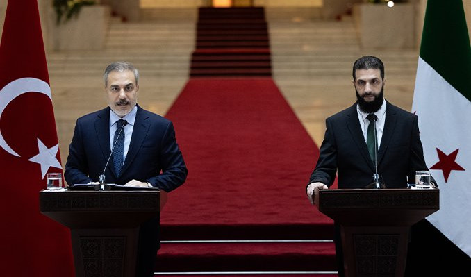 Fidan, Suriye’nin başkenti Şam’da Suriye’deki yeni yönetimin lideri Ahmed eş-Şera ile görüşmesinin ardından düzenlenen ortak basın toplantısında konuştu.