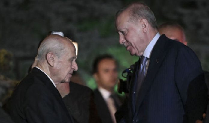 Bahçeli, ardından Cumhurbaşkanı Erdoğan’ı karşıladı. Erdoğan ve Bahçeli, tokalaşıp basın mensuplarına poz verdikten sonra konuta geçti. Cumhurbaşkanı Erdoğan ve Bahçeli arasındaki görüşme, saat 18.30’da başladı.