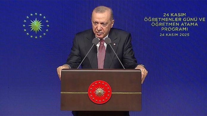 Cumhurbaşkanı Recep Tayyip Erdoğan, Beştepe Millet Kütüphanesi’nde “24 Kasım Öğretmenler Günü ve Öğretmen Atama Programı”nda konuştu.
