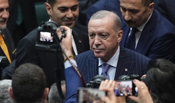 Cumhurbaşkanı Erdoğan, TBMM’de gerçekleştirilen Grup Toplantısı’nın ardından basın mensuplarının sorularını cevapladı. Bir gazetecinin DEM Parti’den bir görüşme talebinin gelip gelmediğini soruması üzerine Erdoğan, “Arkadaşlarımıza gelmiş. Galiba bir görüşme aralarında özellikle hanımlar, yapacaklar” cevabını verdi.