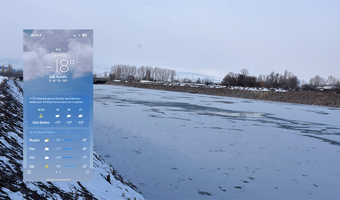 1355 kilometre ile Türkiye’nin en uzun nehri olan Kızılırmak’ın Sivas kent merkezinden geçen bölümlerinin büyük bölümünün buzla kaplandığı görüldü. Soğuk havanın etkisi ile nehirde su akışının zayıf olduğu bölümlerin yüzeyi buz tuttu.