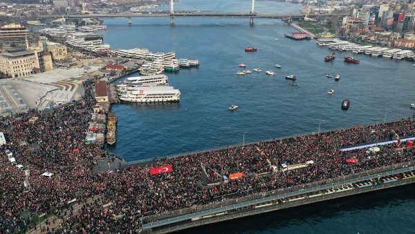 Ayasofya-i Kebir Cami-i Şerifi, Eminönü Yeni Camii, Sultanahmet Camii ve Süleymaniye Camisi önlerinde oluşturulan kortejlerden önce kendi imkanlarıyla Galata Köprüsü’ne gelen katılımcılar burada toplandı.